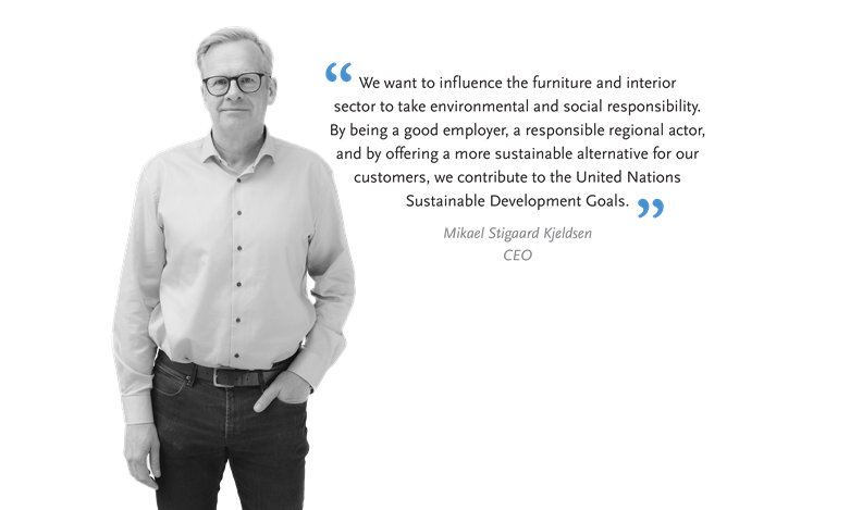 We contribute to the UN Sustainable development goals by influencing the furniture and interior sector to take environmental and social responsibility, by being a good employer, a responsible regional actor, and by helping our customers to become more sustainable.