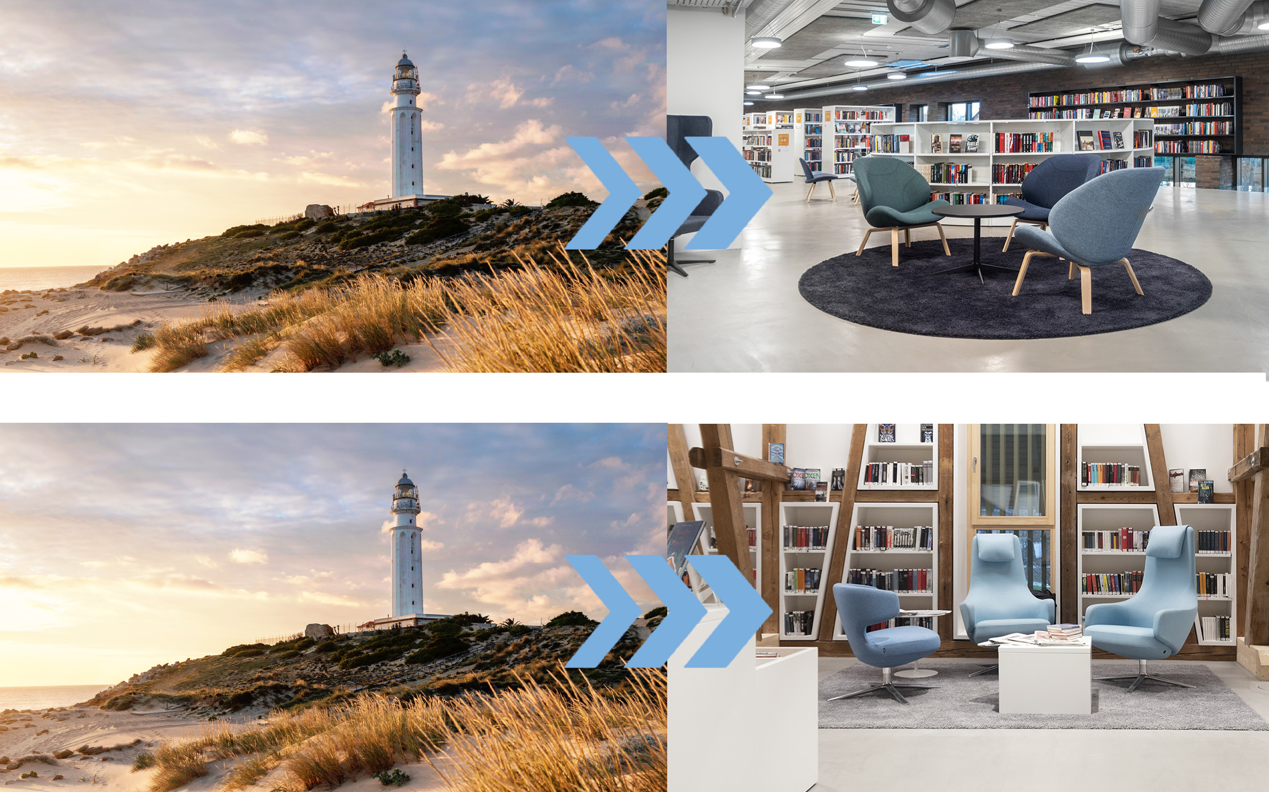We were able to seek inspiration in several of our own projects that illustrate the beach theme and Nordic shores in various, creative ways by the use of colours, furniture and other beach-like elements.