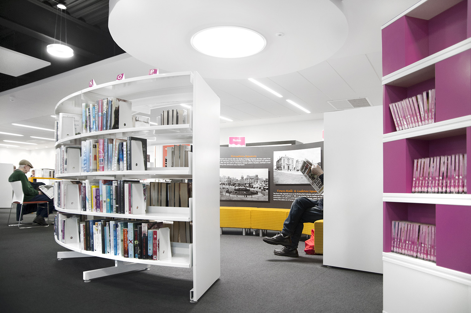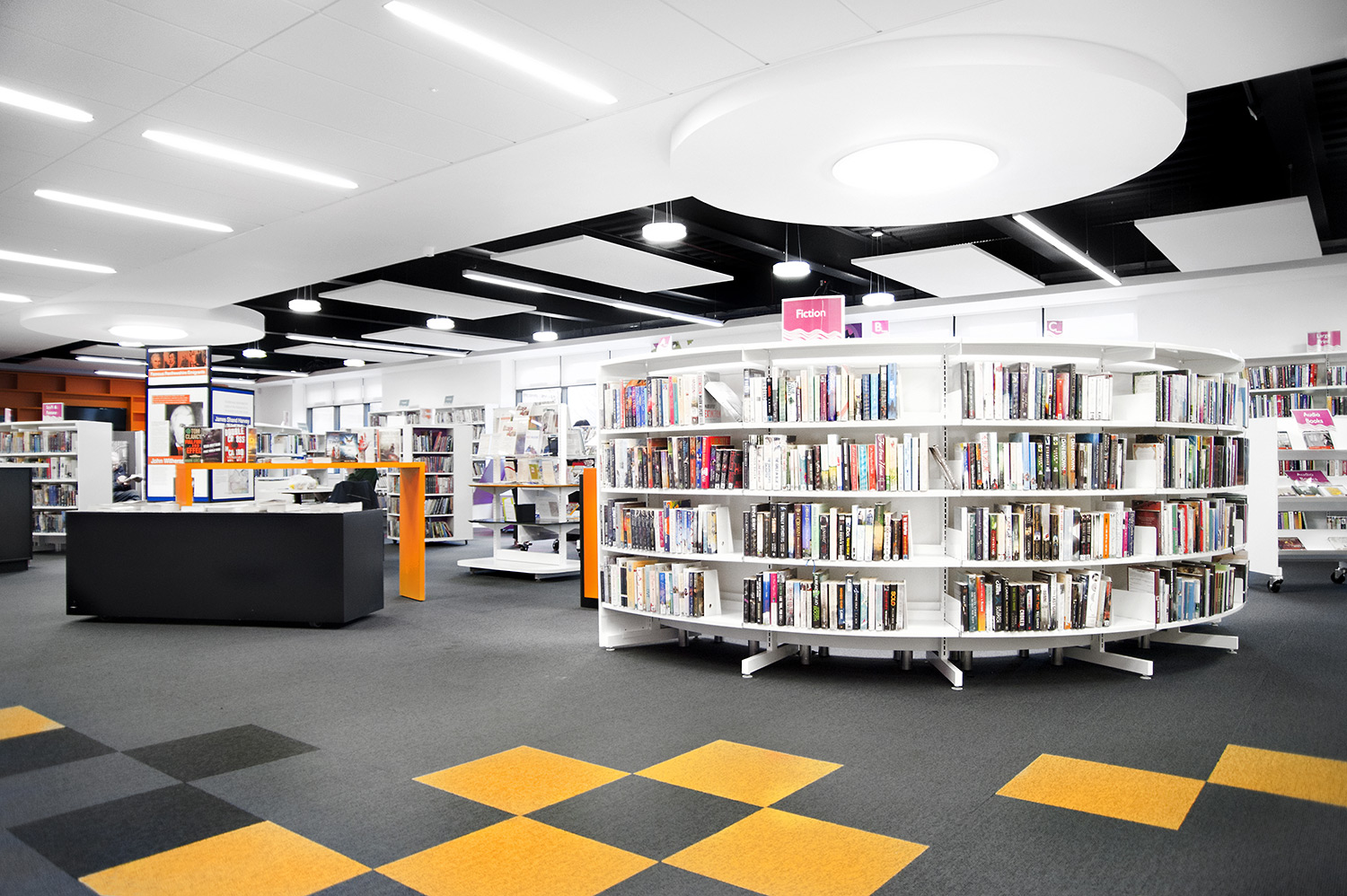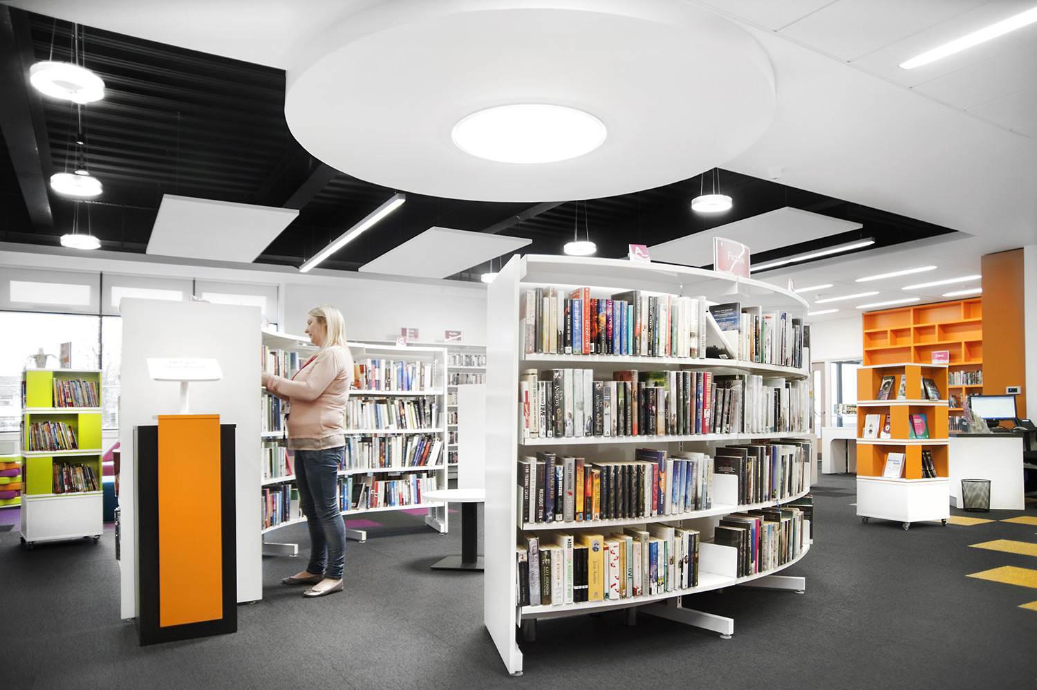 Thedesignconcept ltd. were instrumental in the design of this library together with the flooring, lighting and graphics to ensure we delivered a cohesive design. We worked closely with the architects Holmes Miller and members of the library staff to ensure we were able to meet the library brief. In this respect, it is an extraordinary building inside and out.