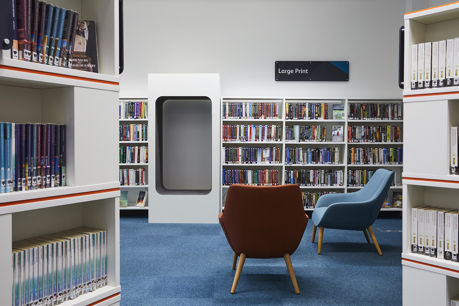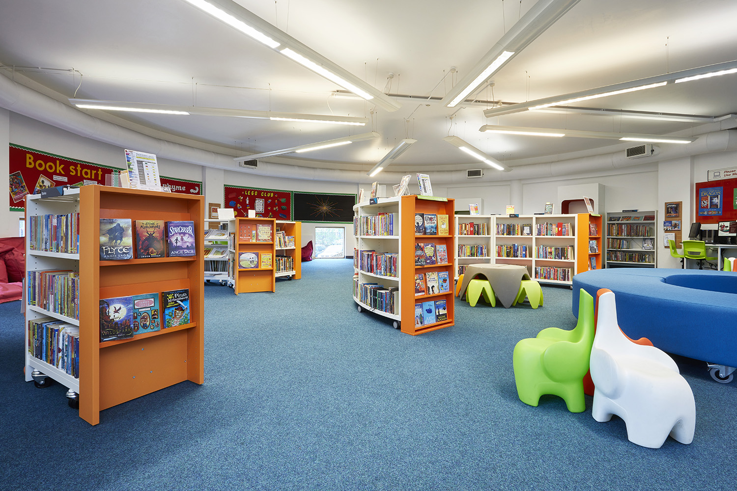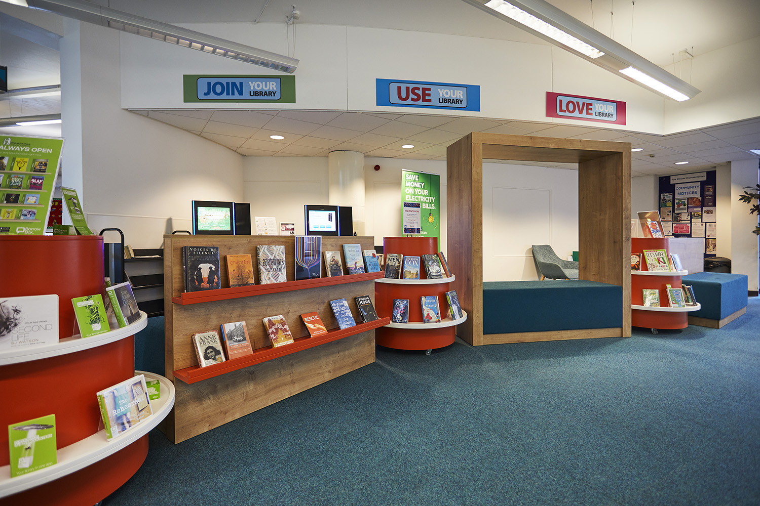 The Children’s area is now a bright and colourful space for kids to spend time with animal chairs, soft seating and cocoons to sit in and enjoy their latest read. A feature chair is also used for story-time and encourages parents to sit with their children and read a good book.