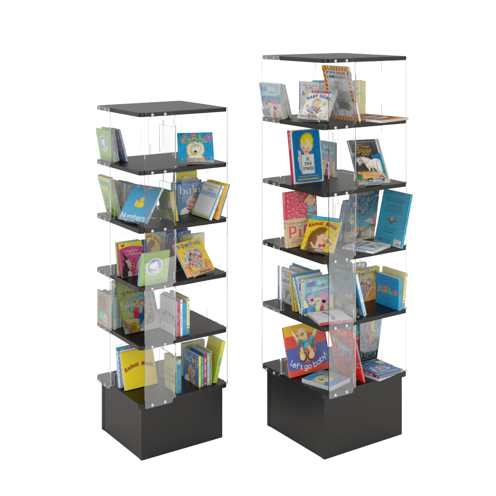 The Stockholm displays towers are visual and can accommodate many materials.
