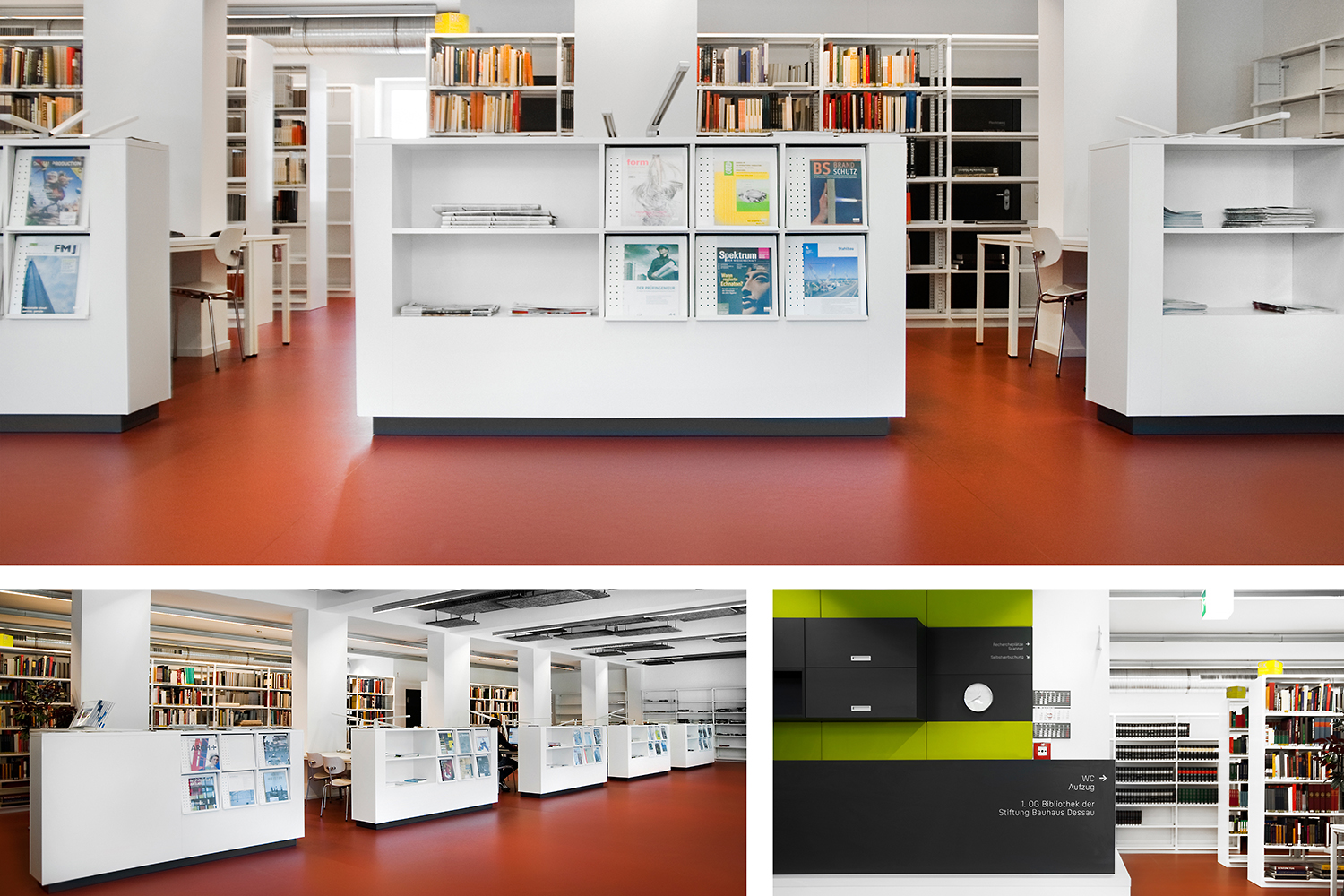 The library of the "Stiftung Bauhaus" serves as a public research and information library for the history of the Bauhaus as well as for common project work. After 20 years in an interim arrangement, the new library provides a permanent solution. The collection is one of the greatest of its kind in Europe.