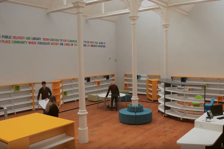 The video shows the hardworking librarians stocking the shelves and also gives a sneak peak of what the library users can expect when the library opens!