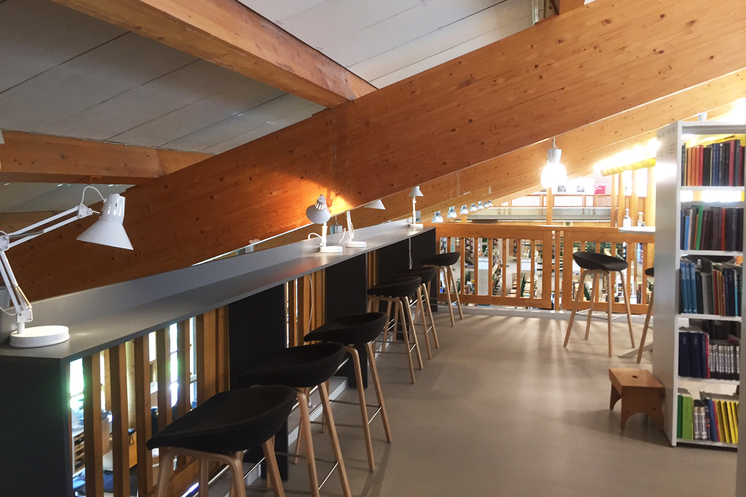 The interior design is made by interior architect Lykke Jørgin from Lammhults Biblioteksdesign A/S in cooperation with Move Arkitekter. Lammhults Biblioteksdesign has delivered the furniture including Frontline shelving system, Maria display stand, tables, chairs and a variety of customised furniture.